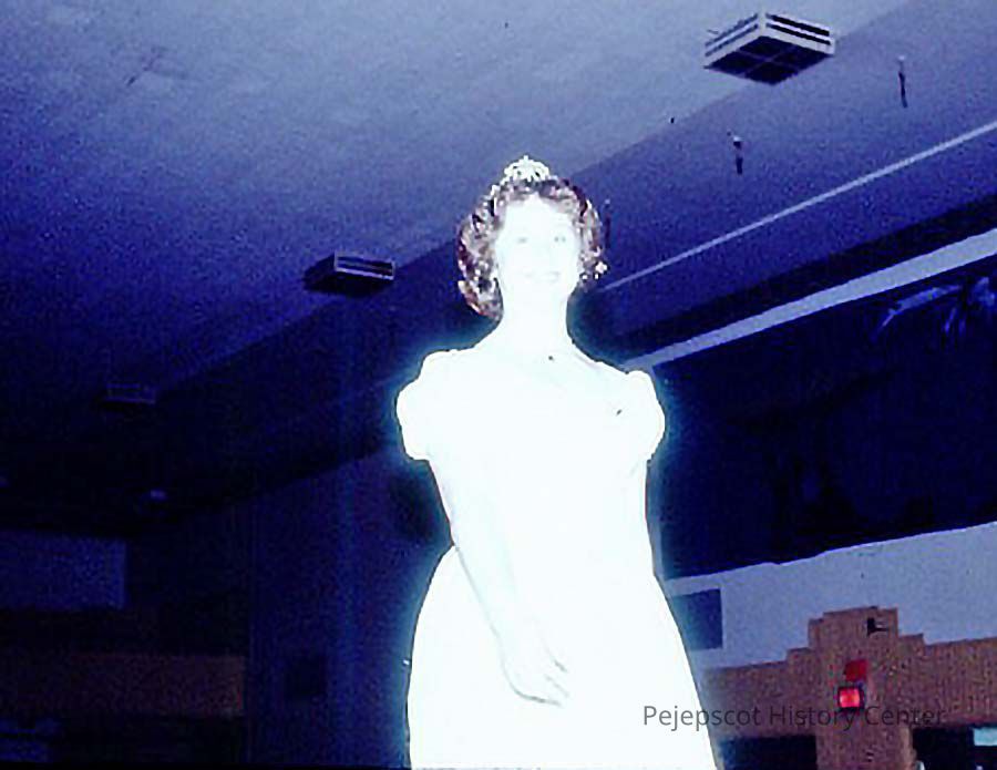 A 35 mm slide of a contestant in the 1979 Miss Teen Queen Pageant. It is marked "Jul 79" and "16". Sponsored by Christian Youth Organization (CYO).