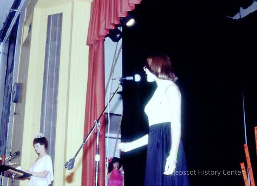 A 35 mm slide of a contestant in the 1979 Miss Teen Queen Pageant. It is marked "Jul 79" and "19". Sponsored by Christian Youth Organization (CYO).