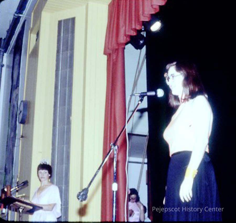 A 35 mm slide of a contestant in the 1979 Miss Teen Queen Pageant. It is marked "Jul 79" and "21". Sponsored by Christian Youth Organization (CYO).