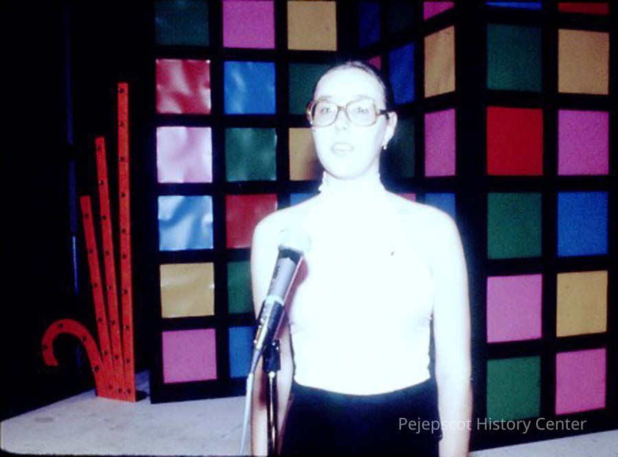 A 35 mm slide of a contestant in the 1979 Miss Teen Queen Pageant. It is marked "Jul 79" and "2". Sponsored by Christian Youth Organization (CYO).