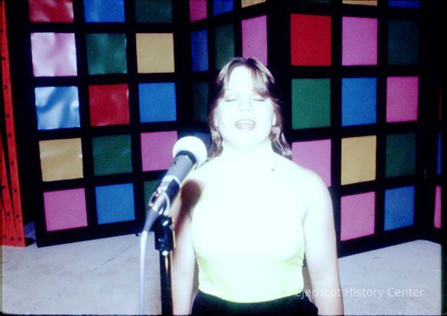 A 35 mm slide of a contestant in the 1979 Miss Teen Queen Pageant. It is marked "Jul 79" and "7". Sponsored by Christian Youth Organization (CYO).