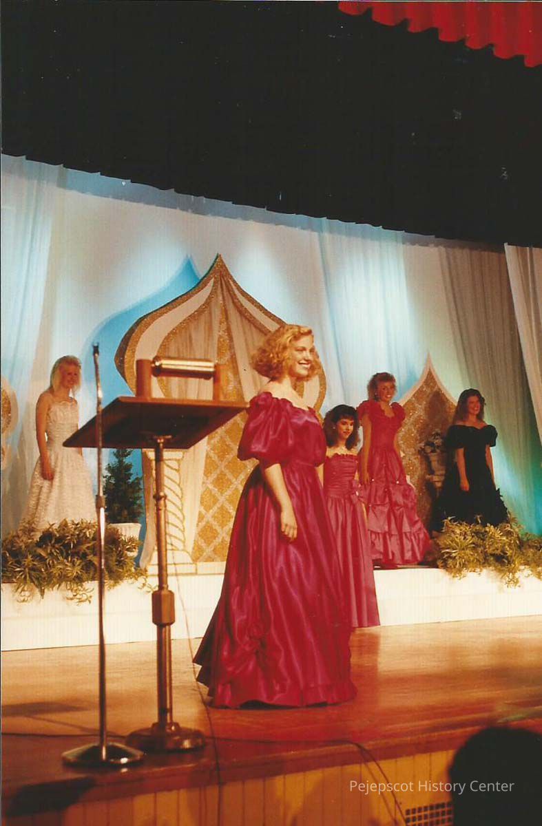 A color photograph of an unknown girl competing in the Brunswick Teen Queen Pageant.