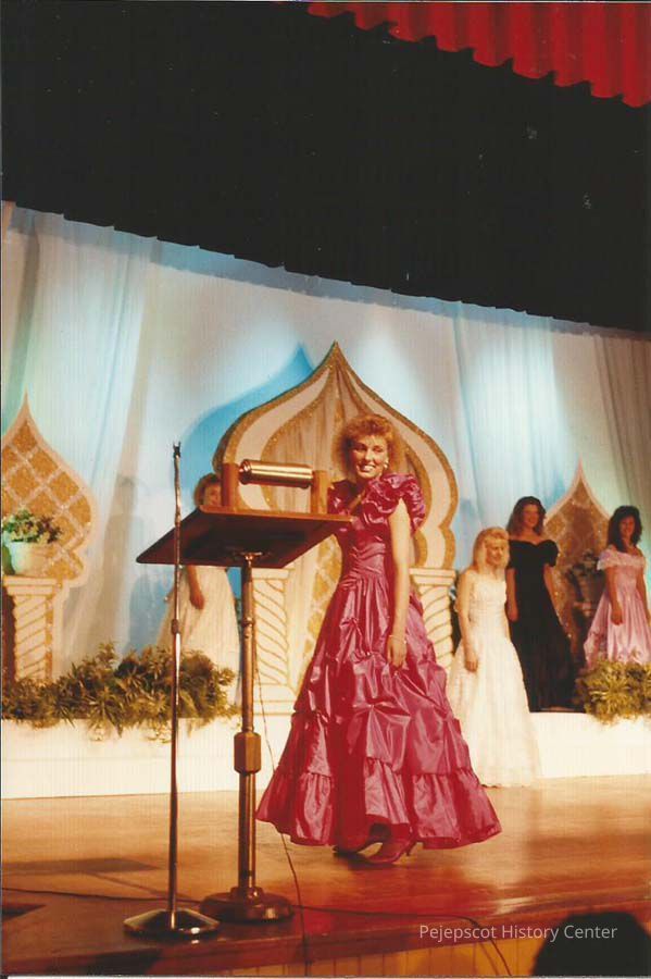 A color photograph of an unknown girl competing in the Brunswick Teen Queen Pageant.