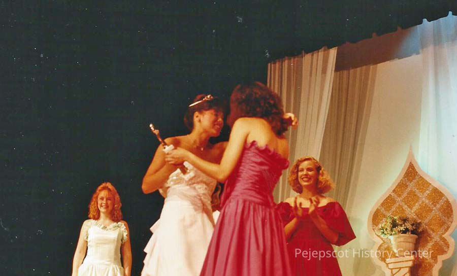 A color photograph of a group unknown girls competing in the Brunswick Teen Queen Pageant.