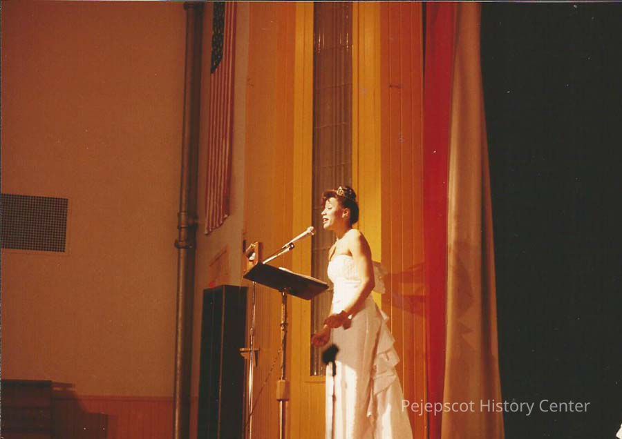 A color photograph of an unknown girl competing in the Brunswick Teen Queen Pageant.