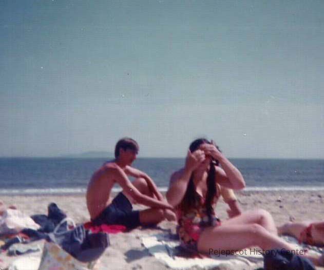 A color photograph of a beach scene.