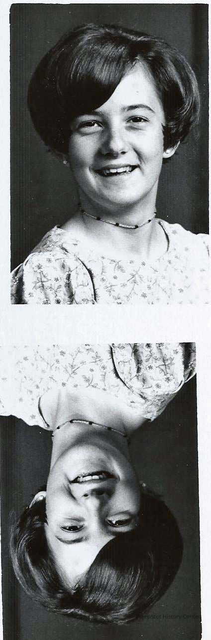 A B/W photograph of an unknown Two pictures on a strip. One upside down compared to the other.