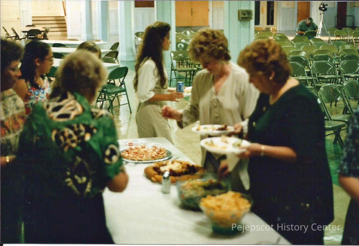 A color photograph of people getting food. Photographer's # 2-5 CYO sponsored