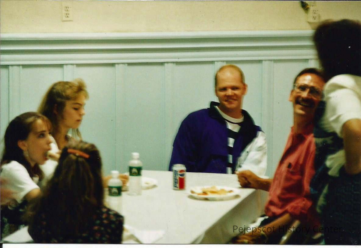 A color photograph of people at a table eating. Photographer's # 2-12 CYO sponsored