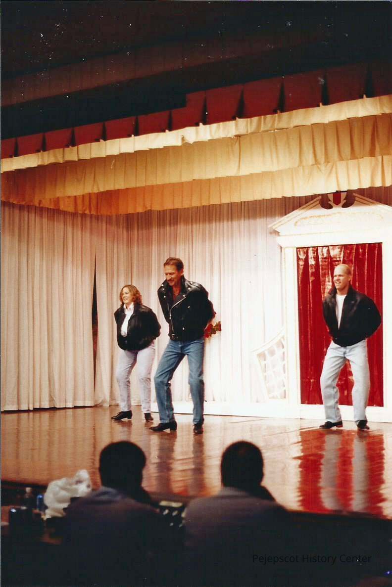 A color photograph of 3 people dancing. Photographer's # 4-36 CYO sponsored