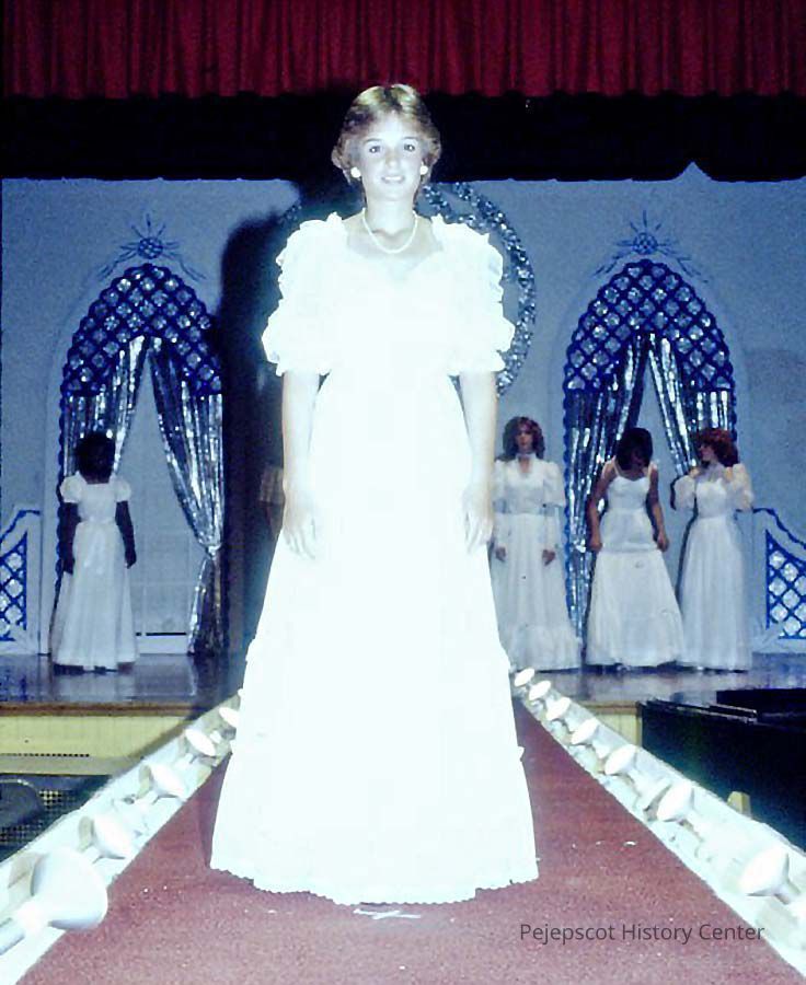 A 35 mm color slide of a contestant in the 1983 Miss Teen Queen Pageant. The slide is marked, "Jul 83" and "33".