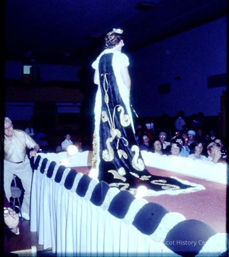 A 35 mm slide of a winner in the 1978 Miss Teen Queen Pageant. It is marked "Jul 78" and "11". Sponsored by Christian Youth Organization (CYO).