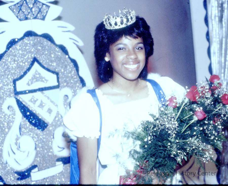 A 35 mm color slide of a contestant in the 1983 Miss Teen Queen Pageant. The slide is marked, "Jul 83" and "36".