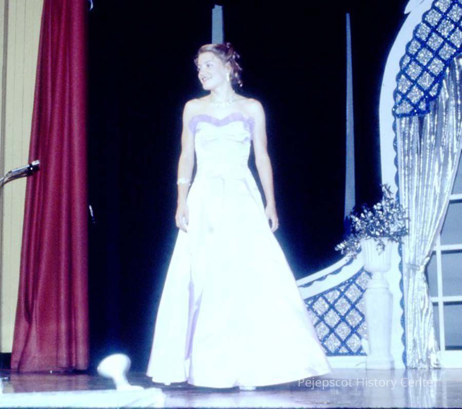 A 35 mm color slide of a contestant in the 1983 Miss Teen Queen Pageant. The slide is marked, "Jul 83" and "5-98".