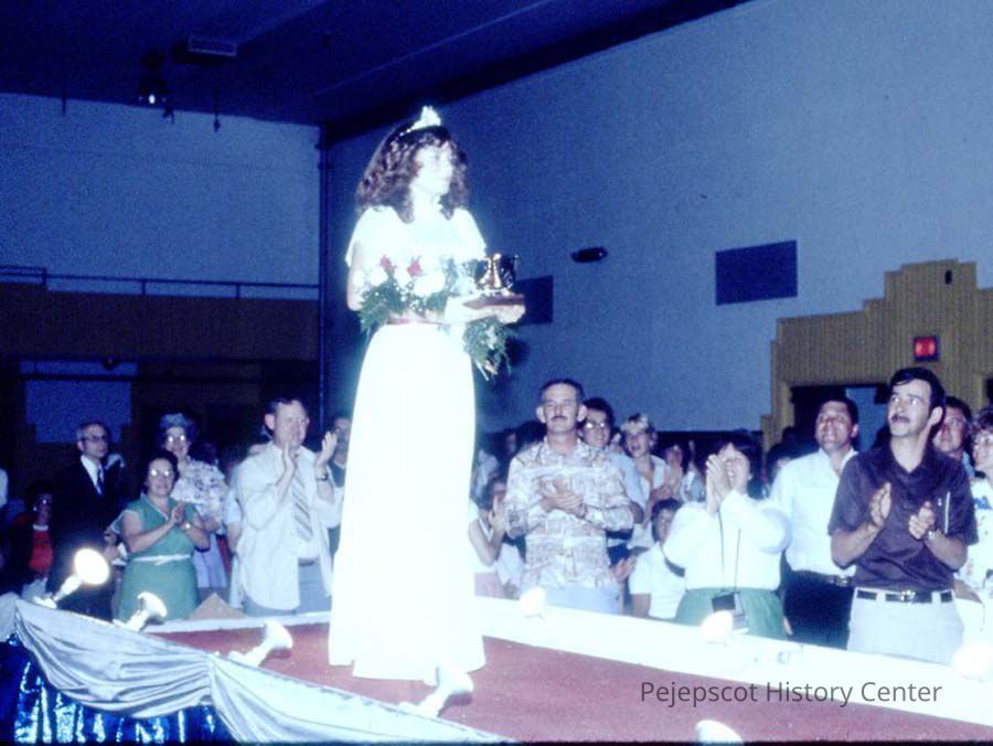 A 35 mm color slide of a contestant in the 1983 Miss Teen Queen Pageant. The slide is marked, "Jul 83", "6" and "S110".
