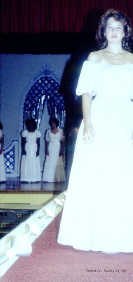 A 35 mm color slide of a contestant in the 1983 Miss Teen Queen Pageant. The slide is marked, "Jul 83" and "29".