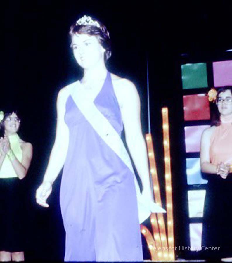 A 35 mm slide of a contestant in the 1979 Miss Teen Queen Pageant. She is wearing a tiara. It is marked "Jul 79", "1-10" and "8". Sponsored by Christian Youth Organization (CYO).