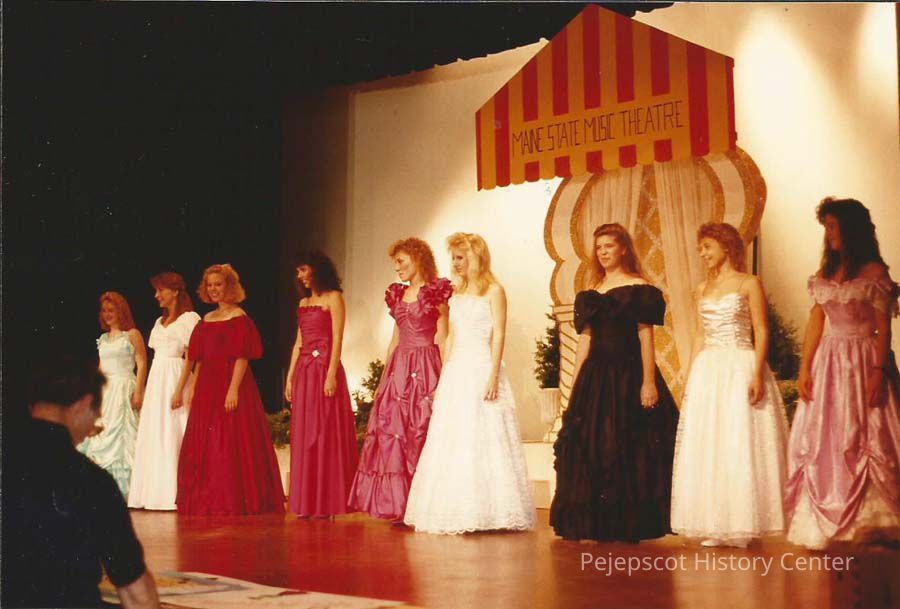 A color photograph of a group of unknown girls competing in the Brunswick Teen Queen Pageant.