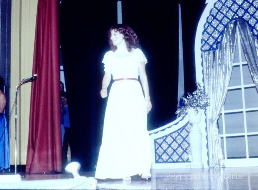 A 35 mm color slide of a contestant in the 1983 Miss Teen Queen Pageant. The slide is marked, "Jul 83", "36" and "S102".