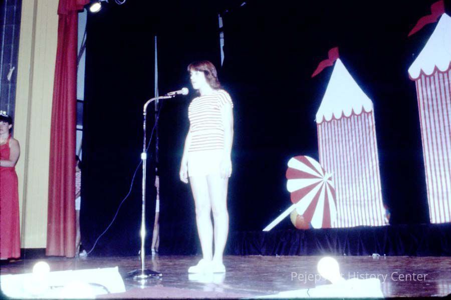 A 35 mm color slide of a contestant in the 1980 Miss Teen Queen Pageant. The slide is marked, "Jul 80" and by a printed "20". Sponsored by Christian Youth Organization (CYO).