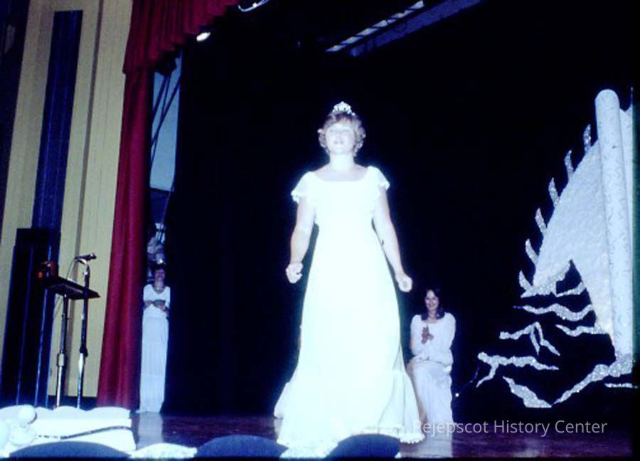 A 35 mm slide of a contestant in the 1978 Miss Teen Queen Pageant. She is wearing a tiara. It is marked "Jul 78" and "9". Sponsored by Christian Youth Organization (CYO).