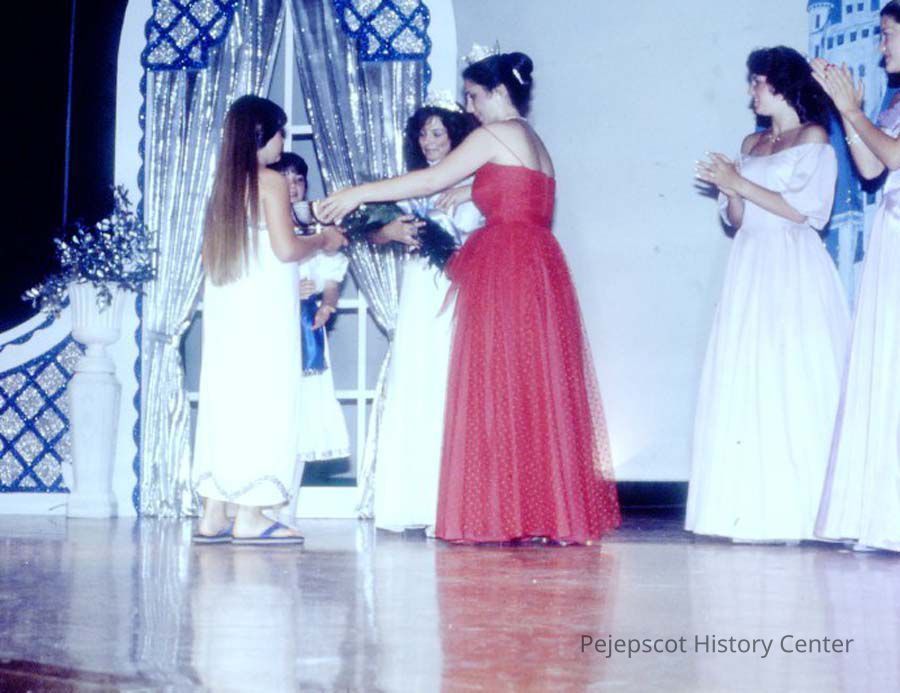 A 35 mm color slide of a contestant in the 1983 Miss Teen Queen Pageant. The slide is marked, "Jul 83", "4" and "S108".