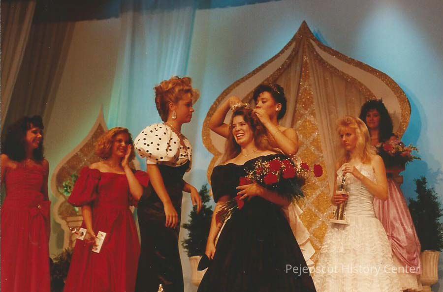A color photograph of a group of unknown girls competing in the Brunswick Teen Queen Pageant.
