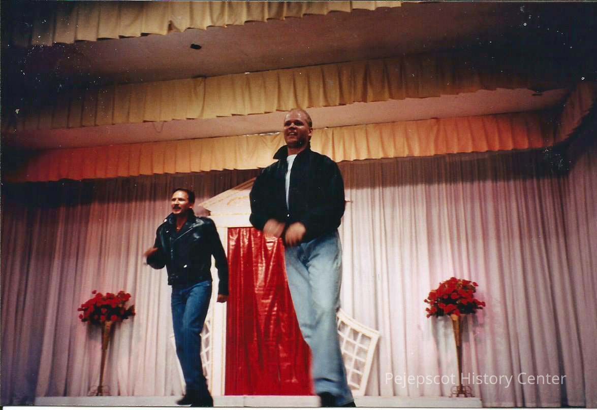 A color photograph of two men dancing/ Photographer's # 1-14 CYO sponsored