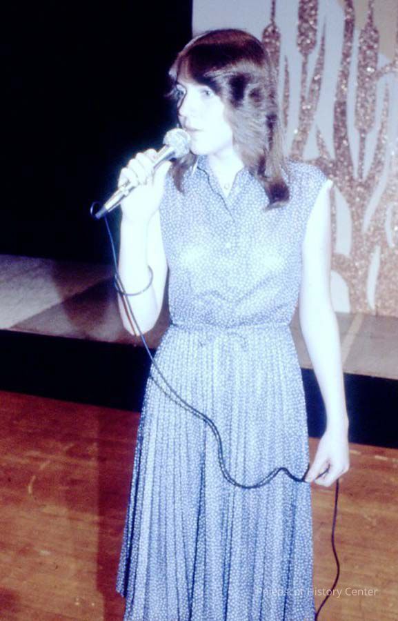 A 35 mm color slide of a contestant in the 1980 Miss Teen Queen Pageant. The slide is marked, "Jul 80" and by a printed "18". Sponsored by Christian Youth Organization (CYO).