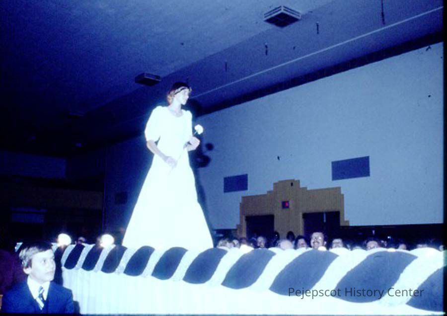 A 35 mm slide of a contestant in the 1978 Miss Teen Queen Pageant. It is marked "Jul 78" "8". Sponsored by Christian Youth Organization (CYO).