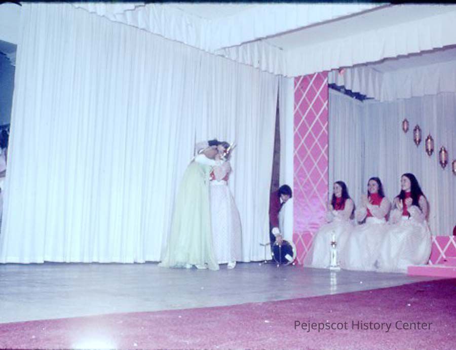 A 35 mm slide of a contestant in the 1974 Miss Teen Queen Pageant. It is marked "Jul 74" and "14". Sponsored by Christian Youth Organization (CYO).