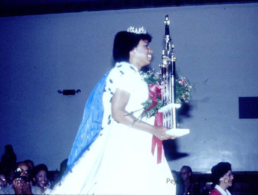 A 35 mm color slide of a contestant in the 1983 Miss Teen Queen Pageant. The slide is marked, "Jul 83" and "15".