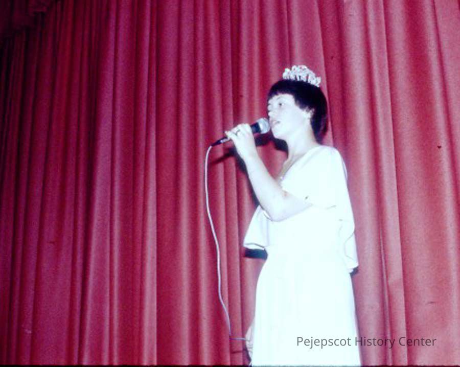 A 35 mm slide of a contestant in the 1979 Miss Teen Queen Pageant. It is marked "Jul 79", "1-22" and "17". Sponsored by Christian Youth Organization (CYO).