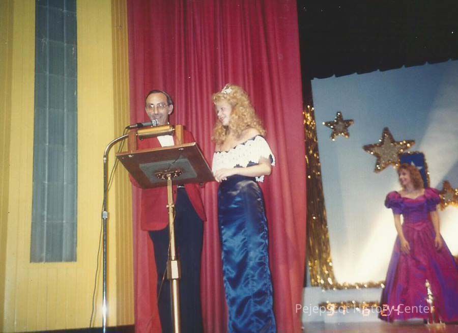 A color photograph of 3 people on stage. Photographers number CYO sponsored