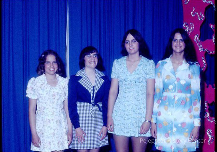 A 35 mm slide of a group of contestants in the 1975 Miss Teen Queen Pageant. It is marked "Jul 75", "1-41" and "15". Sponsored by Christian Youth Organization (CYO).