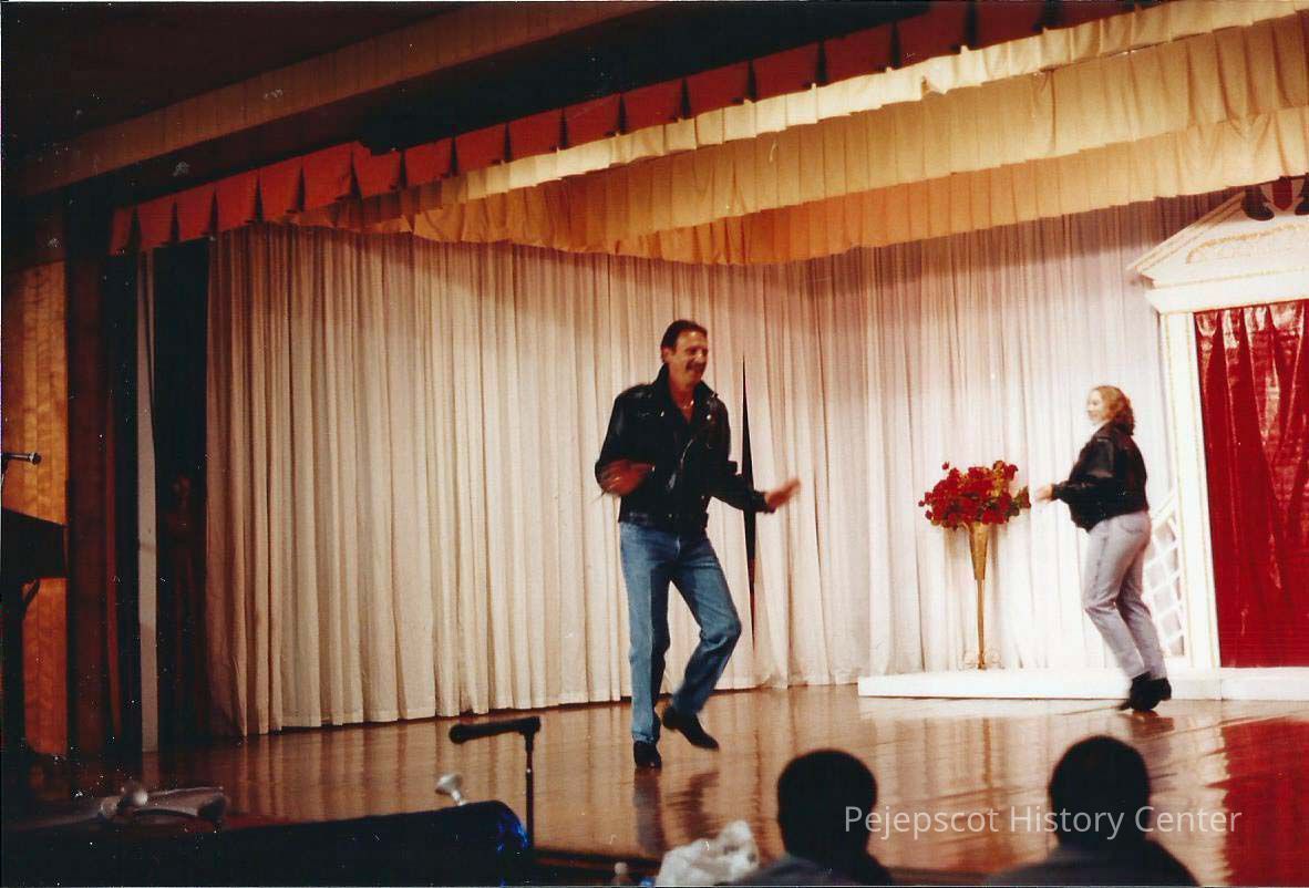 A color photograph of two people dancing on stage. Photographer's # 4-33 CYO sponsored