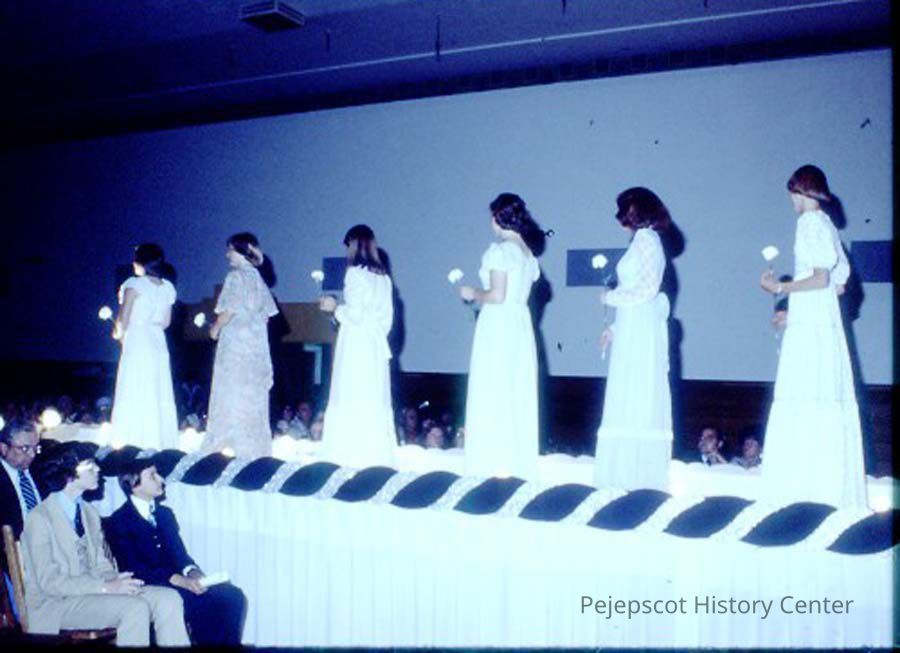 A 35 mm slide of a group of contestants in the 1978 Miss Teen Queen Pageant. It is marked "Jul 78", "2-58" and "10". Sponsored by Christian Youth Organization (CYO).