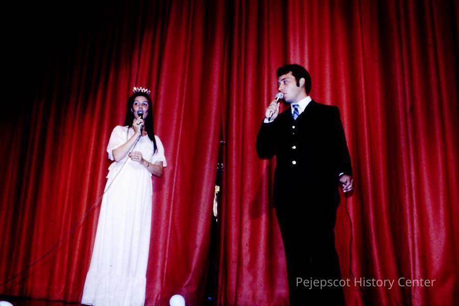 A 35 mm color slide of a winner and MC in the 1980 Miss Teen Queen Pageant. The slide is marked, "Jul 80" and by a printed "11". Sponsored by Christian Youth Organization (CYO).