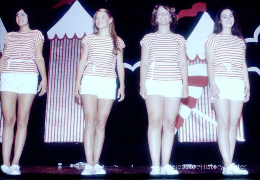 A 35 mm color slide of 4 contestants in the 1980 Miss Teen Queen Pageant. The slide is marked, "Jul 80" and by a printed "7". Sponsored by Christian Youth Organization (CYO).