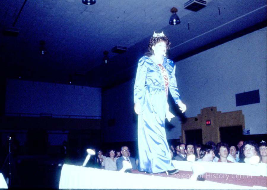 A 35 mm color slide of a contestant in the 1984 Miss Teen Queen Pageant. The slide is marked, "Jul 84" and "8", And on the front, "4".