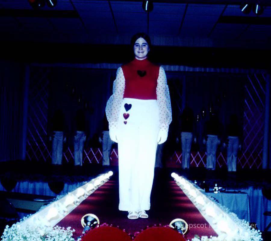 A 35 mm color slide of a contestant in the 1974 Miss Teen Queen Pageant. The slide is marked, "Jul 74" and "12".