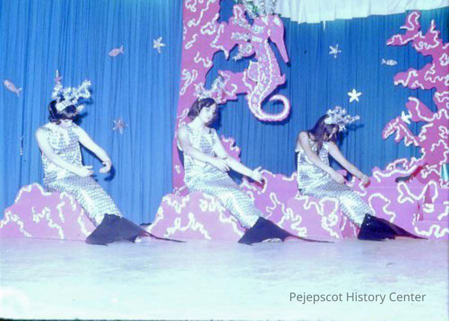 A 35 mm slide of 3 contestants dancing in the 1975 Miss Teen Queen Pageant. It is marked "Jul 75" and "20". Sponsored by Christian Youth Organization (CYO).