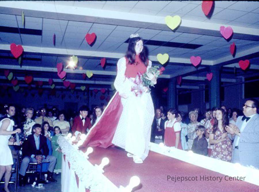 A 35 mm slide of a contestant in the 1975 Miss Teen Queen Pageant. It is marked "Jul 75" and "2-32". Sponsored by Christian Youth Organization (CYO).