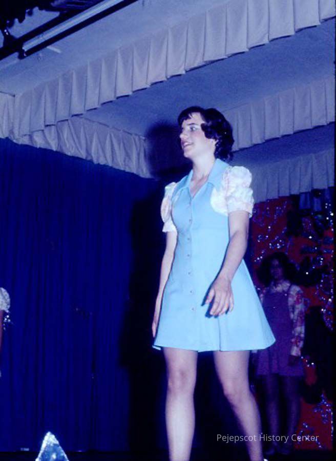 A 35 mm slide of a contestant in the 1975 Miss Teen Queen Pageant. It is marked "Jul 75" and "13". Sponsored by Christian Youth Organization (CYO).