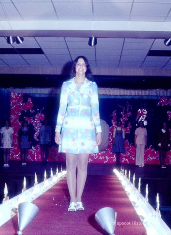 A 35 mm slide of a contestant in the 1975 Miss Teen Queen Pageant. It is marked "Jul 75" and "6". Sponsored by Christian Youth Organization (CYO).