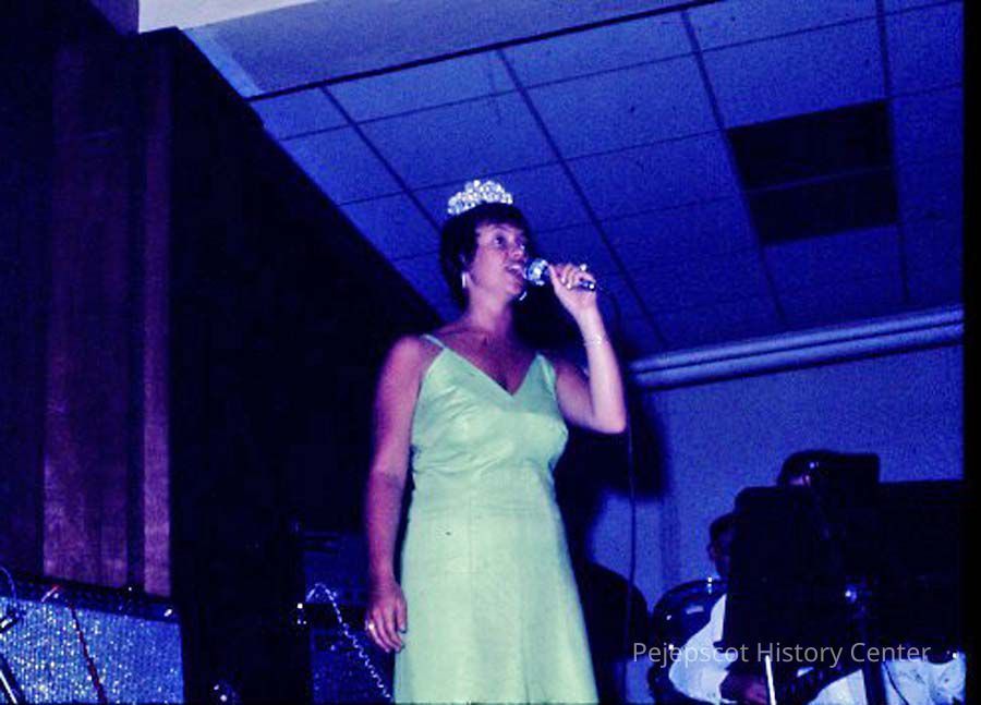 A 35 mm slide of a contestant in the 1975 Miss Teen Queen Pageant. It is marked "Jul 75" and "10". Sponsored by Christian Youth Organization (CYO).