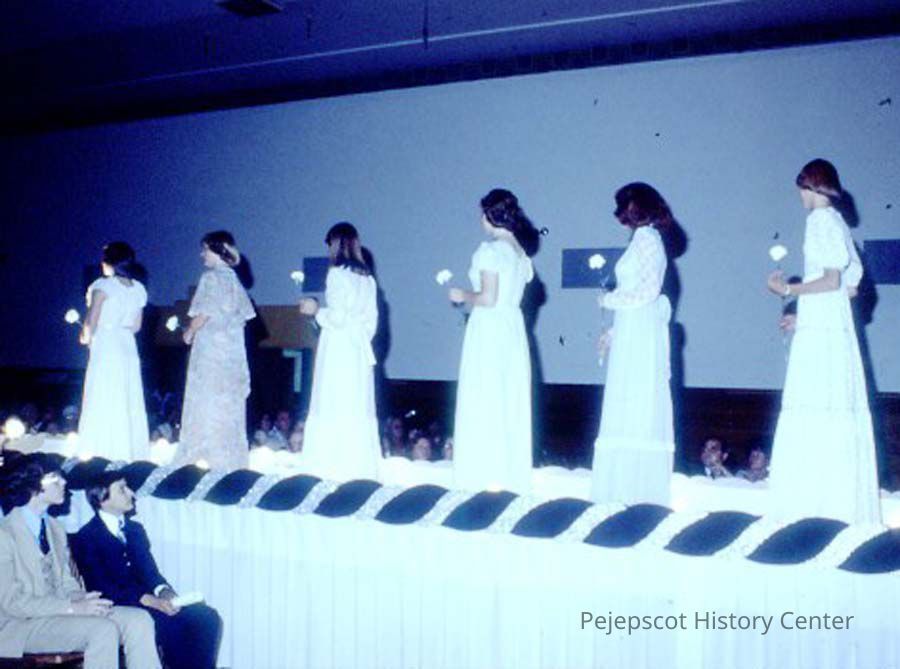 A 35 mm slide of 6 contestants in the 1978 Miss Teen Queen Pageant. It is marked "Jul 78" and "9". Sponsored by Christian Youth Organization (CYO).