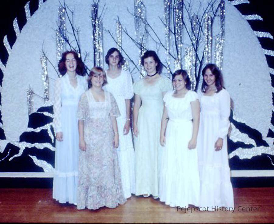 A 35 mm slide of 6 contestants in the 1978 Miss Teen Queen Pageant. It is marked "Jul 78", "2-63" and "4". Sponsored by Christian Youth Organization (CYO).