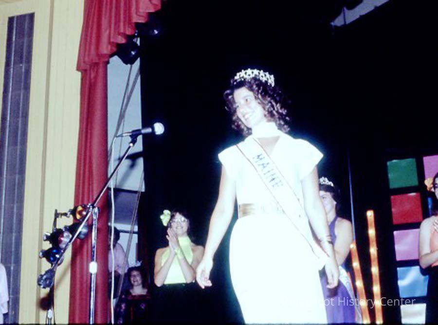 A 35 mm slide of a contestant in the 1979 Miss Teen Queen Pageant. It is marked "Jul 79", "1-11" and "9". Sponsored by Christian Youth Organization (CYO).
