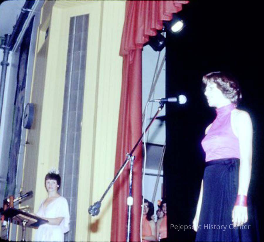 A 35 mm slide of a contestant in the 1979 Miss Teen Queen Pageant. It is marked "Jul 79" and "20". Sponsored by Christian Youth Organization (CYO).